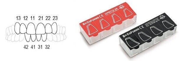Transparent Corner Matrices for class IV fillings, restoration of incisal edges,restoration of corners, support and form for core build-ups, support and form when making pontics in bonded composite bridges.