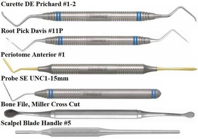 Implant Placement Kit Contains: – 2 Cassette large 16 instrument blue, scalpel blade handle #5, sinus lift lucas #85, periotome anterior #1 – round, rongeur friedman #1, bone file miller cross cut, curette sinus lift #918, curette sinus lift #913, probe SE UNC1-15mm, bein luxating elevator 3mm, bein luxating elevator 2mm, root pick davis 11P, periosteal elevator seldin DE, hemostate kelly curved, needle holder crile-wood #204, forcep tissue adson brown, caliper castroviejo curved 40mm, periosteal buser, periosteal richard #3, elevator periosteal molt #9, curette DE prichard #1-2, perio chisel, suction tip #12, plier corn suture 6", retractor univ. of Minnesota, scissor lagrange 4-1/2" & scissor iris curved 4-1/2."