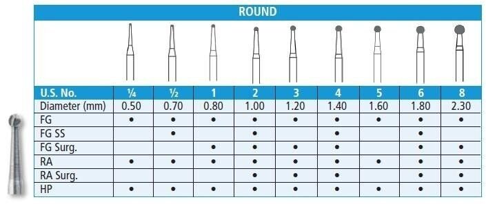 Medium sizes often used for interproximal cavities in anterior teeth.