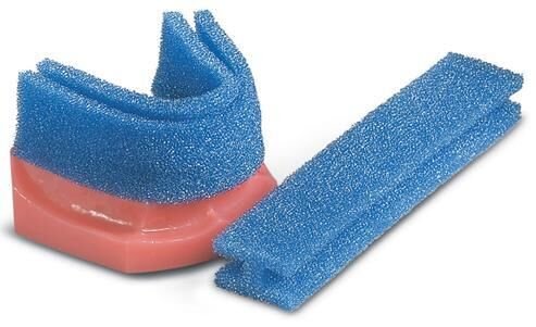Comfortable, low-cost I-Beam Dual Arch Foam Fluoride Trays contour to fit any arch. Foam construction absorbs gels for improved fluoride retention and coverage. "I-beam" shape treats both arches at once. May be cut to desired length. 5" long.