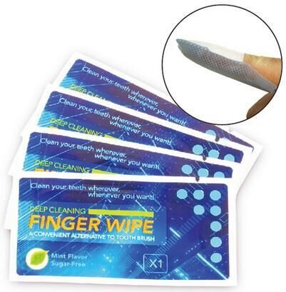 Textured teeth wipes that can be used anytime, anywhere to quickly clean the plaque off of teeth and freshen breath without the use of water or rinsing.
