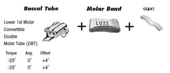 1st Molar Bands Assembly with Lower DBT Buccal Tube and Cleat