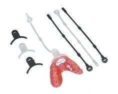 Keystone has developed an easy-to-attach helmet strap used in the production of custom-made mouthguards. These straps have a safety release feature that allows the mouthguard to break away under 12 pounds of pressure. Available in black and clear. Sold in packages of 12 and 25.